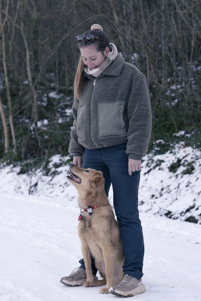 Victoria est éducatrice canine en formation. Issue du monde de la petite enfance, elle a développé une approche basée sur l’observation, la patience et l’accompagnement, des compétences qui trouvent de nombreuses similitudes avec le travail auprès des chiens. Elle se forme aujourd’hui activement afin de devenir une professionnelle du monde canin.